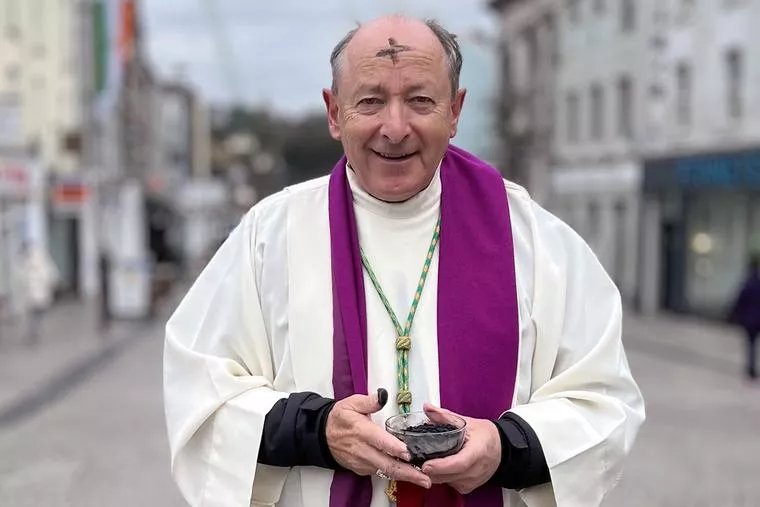WATERFORD, IRSKO - Na Popeleční středu vyšel biskup Alphonsus Cullinan (diecéze Waterford a Lismore) v Irsku do ulic města Waterford a nabídl udělení poplece každému, kdo si to přál.